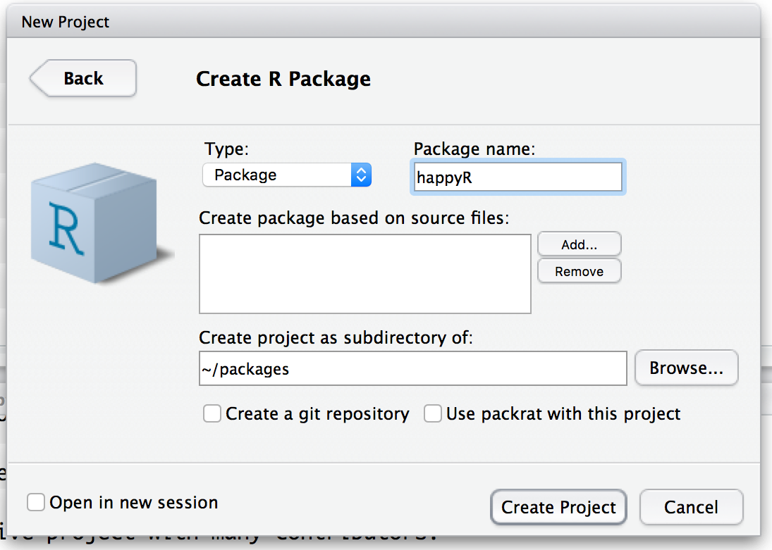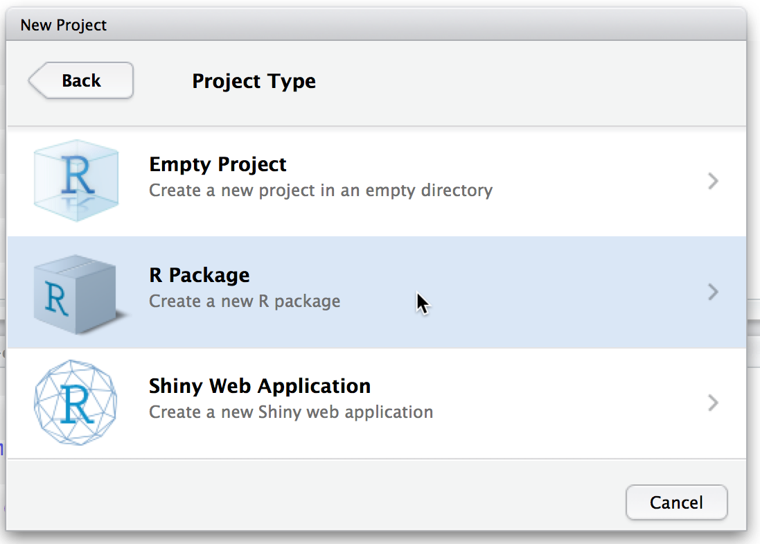 Create a new R package using the RStudio dialog to set it up in a new project.
