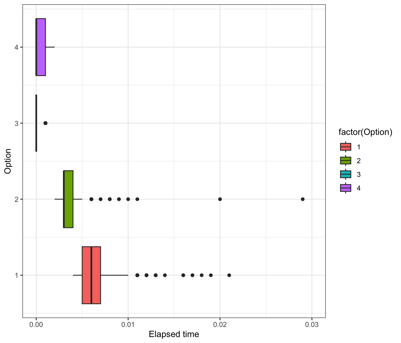 levels(y) <- c("Sun", "Rain", "Snow", "Hail")Option 3 is fastest on average. But why?
